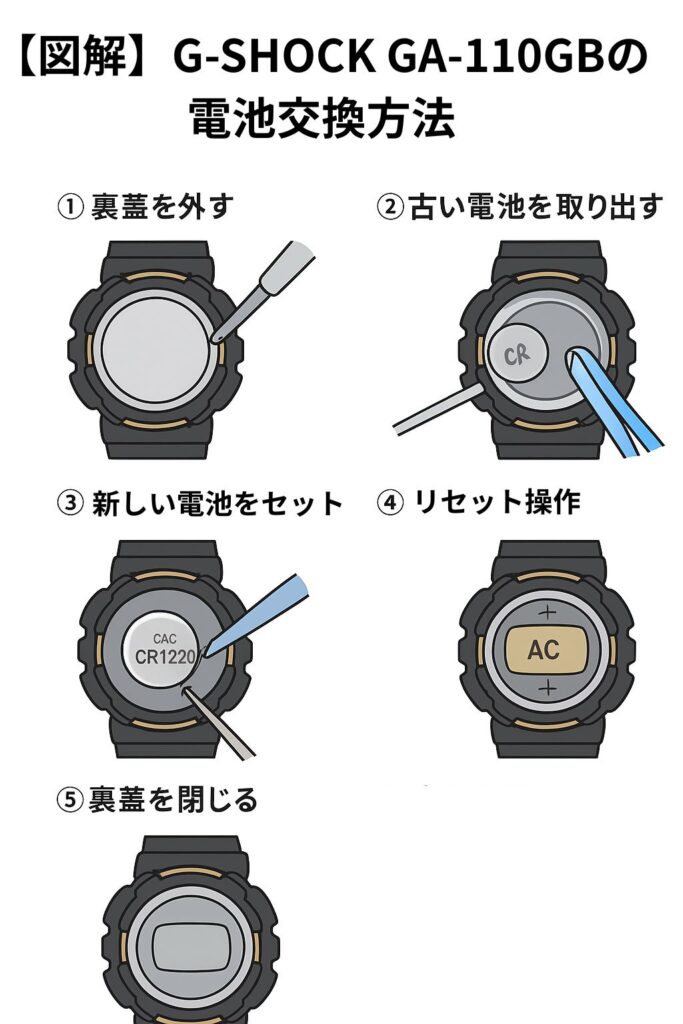 この記事では、実際に GA-110GBの電池交換方法 を初心者向けに写真付きで解説します。