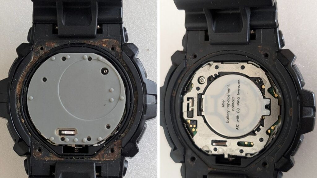 裏蓋を外すと、内部にゴムパッキンが見えます。